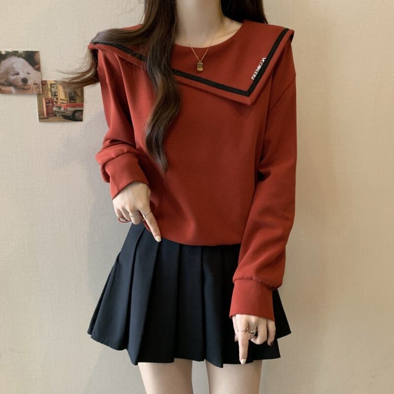 レディース トップス トレーナー スウェット ショート 長袖 萌袖 セーラーカラー スリム 細身 セーラー風 ウエストマーク 綿 かわいい 大人可愛い カジュアル おしゃれ ラフ 春 秋 通勤 通学 お出かけ 休日 体型カバー 普段使い 着回し ゆる