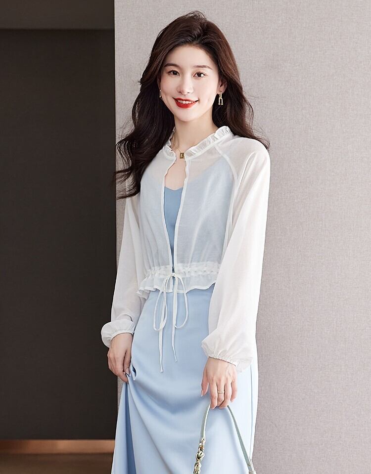 レディース トップス カーディガン 羽織 前開き 長袖 透け感 シースルー 薄手 大人可愛い きれいめ 上品 おしゃれ 無地 夏 M L XL 2XL ホワイト ブラック ベージュ ブルー パープル