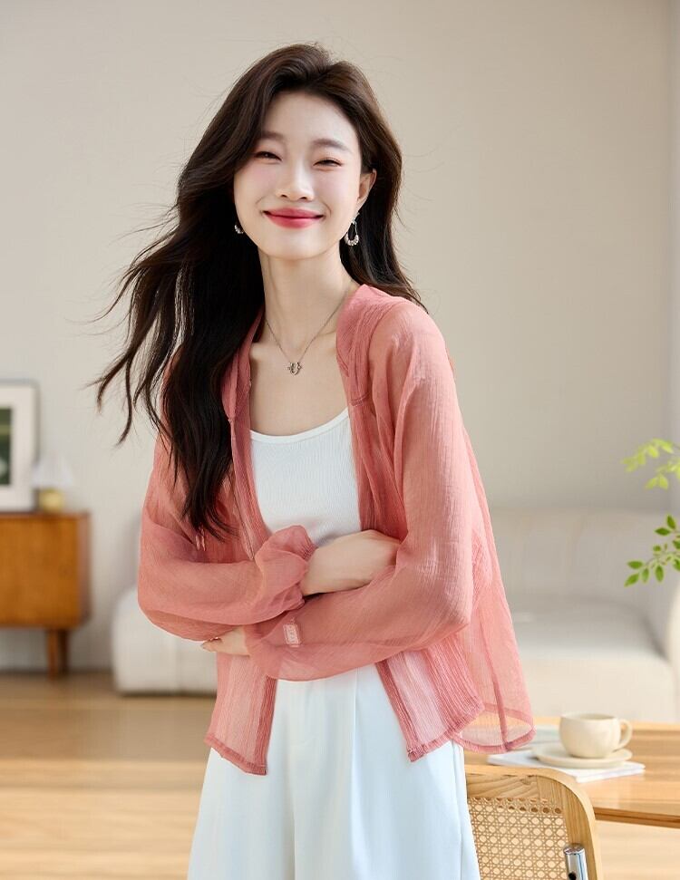 軽やかで涼しげなシースルーカーディガンが登場。 夏をおしゃれにする透け感のある素材は、涼しくて軽く、さらっと羽織るだけで大人可愛いスタイルを実現します。 前開きデザインで、着脱も簡単。 カジュアルさと上品さを両立し、デイリーユースにもぴったりの一枚です。