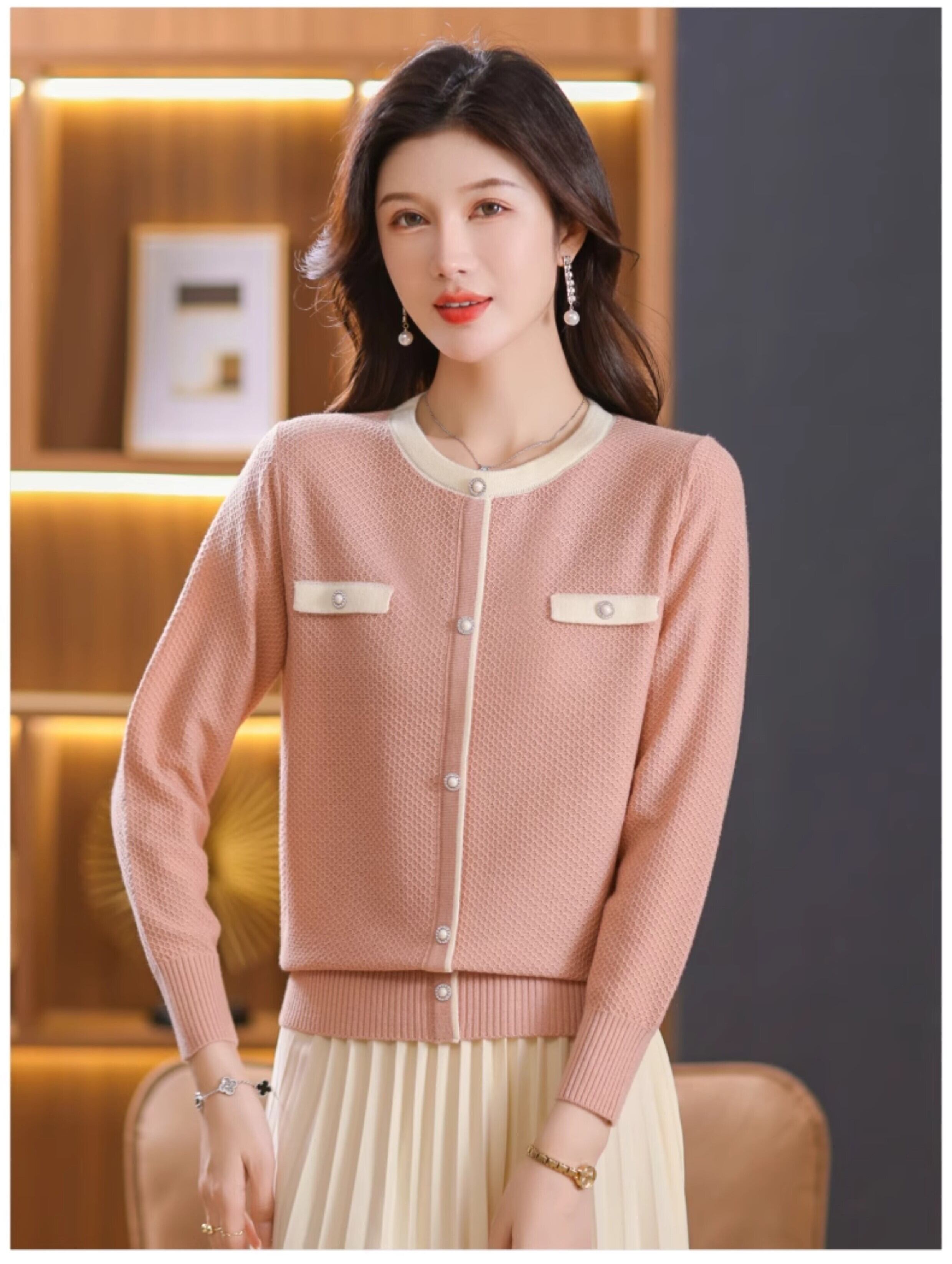 秋冬のコーディネートに欠かせない、大人可愛いシンプルニットカーディガンが登場。前開きデザインで、さっと羽織れる便利さとおしゃれを両立。長袖で寒い季節にもしっかり暖かさをキープし、軽やかな着心地でデイリーに使える万能アイテムです。