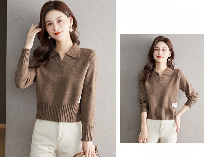 シンプルで上品なデザインが魅力の襟付きVネックニットセーター。長袖で秋冬のコーディネートに最適な一枚です。Vネックがデコルテを美しく見せ、襟付きデザインが大人可愛いスタイルを演出。無地でシンプルなデザインなので、普段使いにもぴったりで、さまざまなシーンで着回しが可能です。