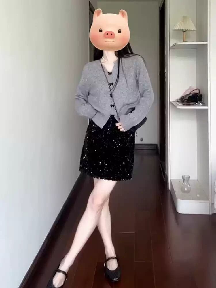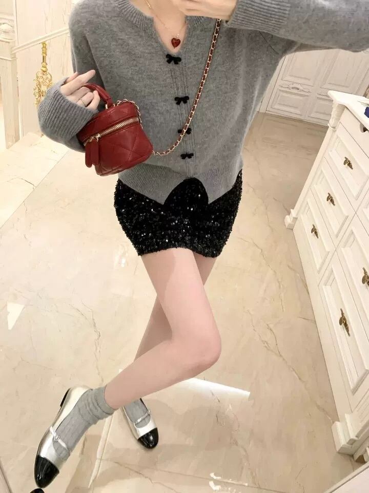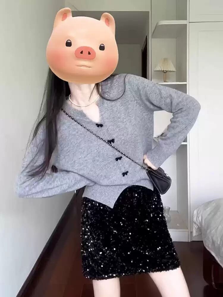 長袖のVネックデザインと、前開きのボタンが特徴的で、リボンディテールがかわいらしさを引き立てます。中厚手の素材は、心地よい温もりを提供し、寒い季節でも安心して着用できます。