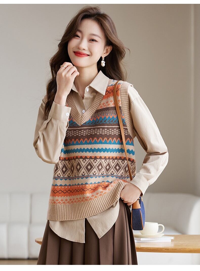 このニットベストは、カラフルなボーダー柄がポイントで、ベースのブラウンカラーと絶妙にマッチし、リラックス感とおしゃれ感を両立します。 カジュアルスタイルにもアクセントを加えて、いつものコーデに新鮮な雰囲気をプラスしますMから2XLまでのサイズ展開があり、ゆったりとしたフィット感で、様々な体型にフィットします。