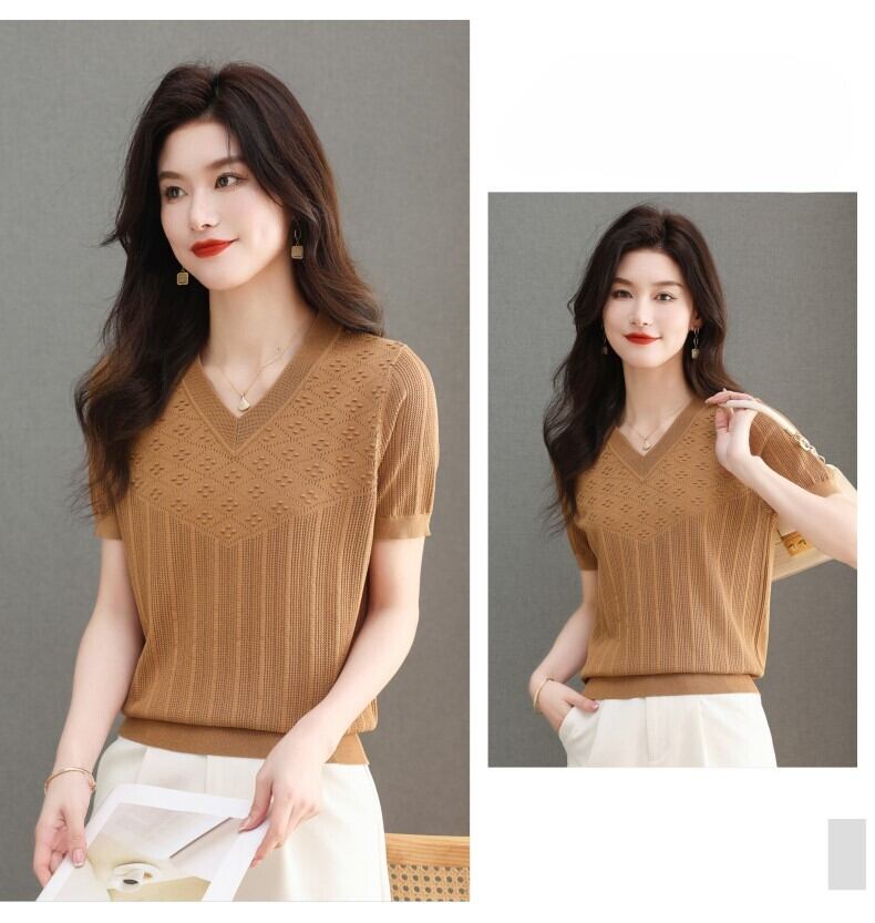 レディース トップス カットソー ニット セーター 半袖 Vネック かわいい 大人可愛い シンプル 上品 おしゃれ こなれ感 夏 普段使い 着回し S M L XL 2XL 3XL 4XL