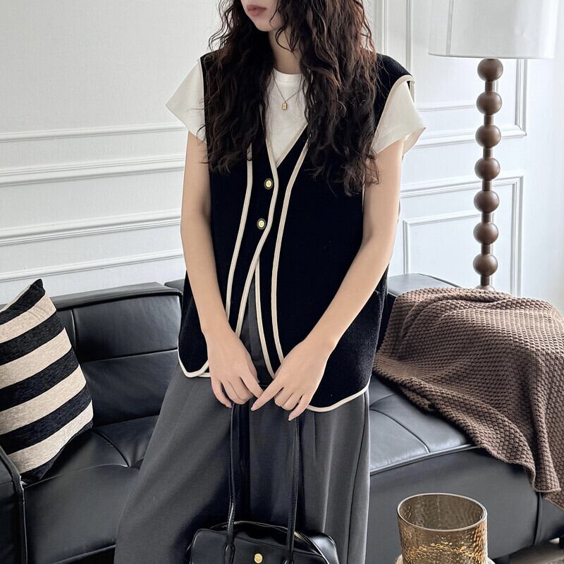 シンプルで使い勝手抜群なジレ。Vネックデザインと前開きボタンが、カジュアルながらも洗練された印象を与えます。軽やかな素材感で、春や秋の重ね着にぴったり。お出かけやショッピングはもちろん、普段使いにも最適です。どんなコーディネートにも合わせやすく、着回し力抜群の一枚。