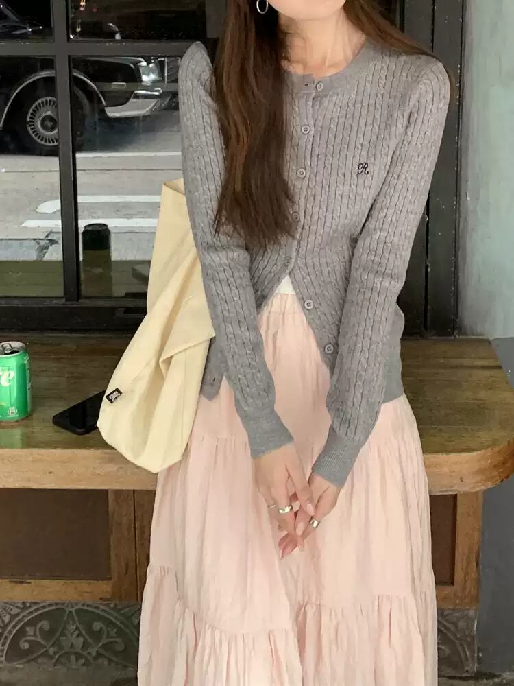 トップス カーディガン 前開き 長袖 ラウンドネック 刺繍 編み込み 大人可愛い シンプル カジュアル おしゃれ 学生風 無地 秋 冬 オフィス 通勤 学生 お出かけ カフェ 楽ちん 普段使い 着回し 定番