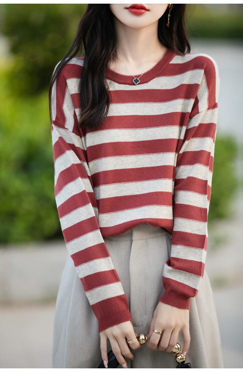 大人可愛いデザインのロンTカットソーが登場!クルーネックとワイドシルエットが大人のおしゃれを引き立て、春や秋の季節にぴったりのアイテムです。カジュアルさと上品さを併せ持つこのトップスは、ボーダー柄がアクセントになり、毎日のコーディネートを楽しむのに最適です。カラーはブラック、ブラウン、イエロー、ブルー、レッド、ネイビーの6色展開で、どんなスタイルにも合わせやすいです!