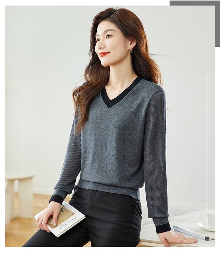大人可愛いデザインのニットセーターが登場!Vネックと袖、裾のリブ編みが絶妙に組み合わさり、シンプルながらもおしゃれな雰囲気を醸し出します。春や秋にぴったりのアイテムで、カジュアルスタイルからきれいめコーデまで幅広く活躍します。チャコールグレーの落ち着いた色合いは、どんなボトムスとも相性抜群です!