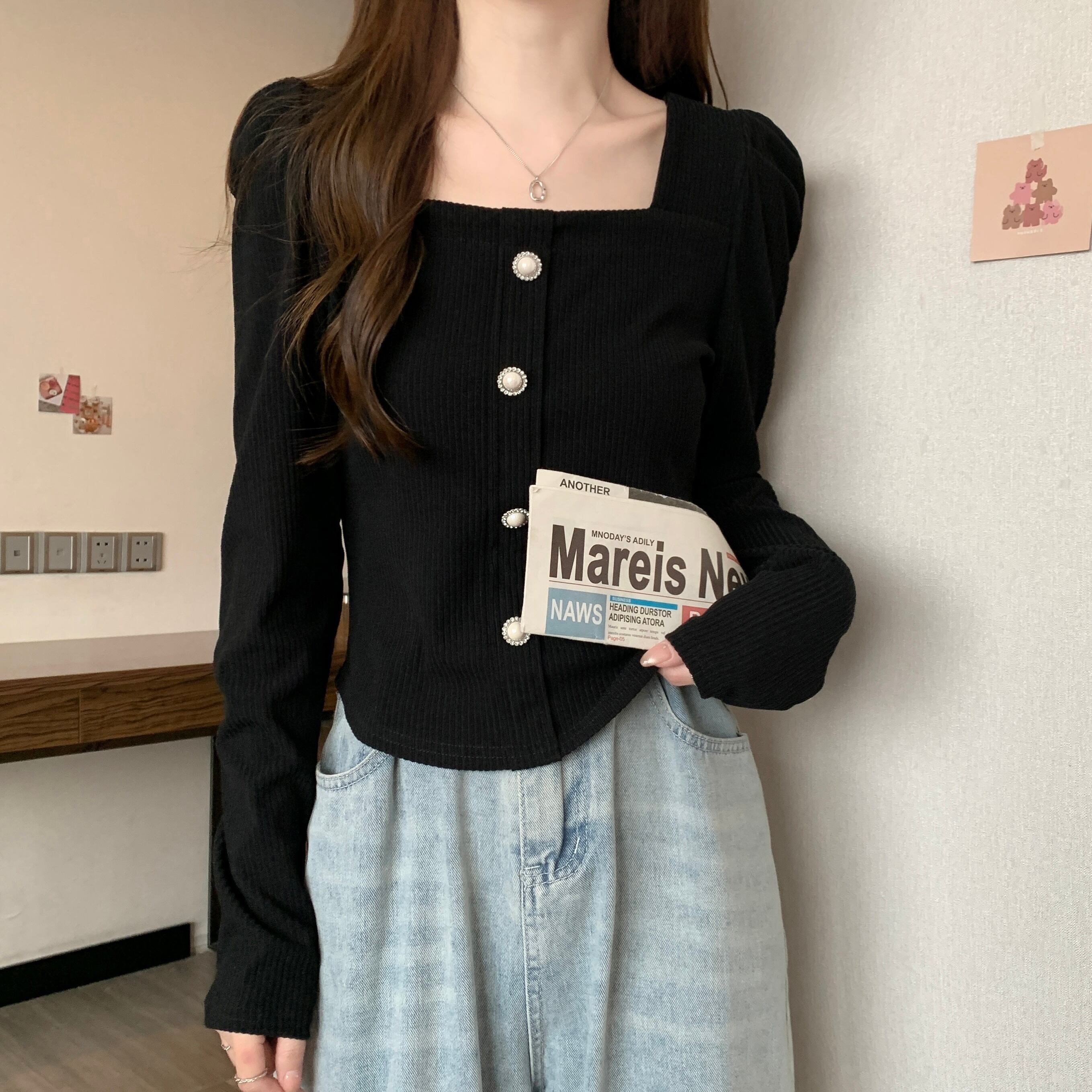 スタイリッシュで大人可愛い、ショート丈のリブニットご用意です!長袖のパフスリーブデザインが、優雅なたっぷりとした印象を与え、春秋のおしゃれなコーディネートにぴったりです。スクエアネックはデコルテを美しく見せ、細身のシルエットが魅力を引き立てます。異国風な雰囲気を楽しみつつ、普段使いやお出かけ、デートにも最適なアイテムです!
