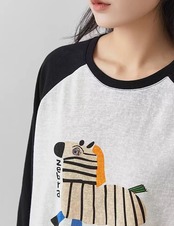レディース トップス ロンT カットソー 長袖 ラウンドネック 中厚手 大人可愛い シンプル カジュアル ラフ zebra 春 秋 通学 お出かけ 公園 休日 普段使い