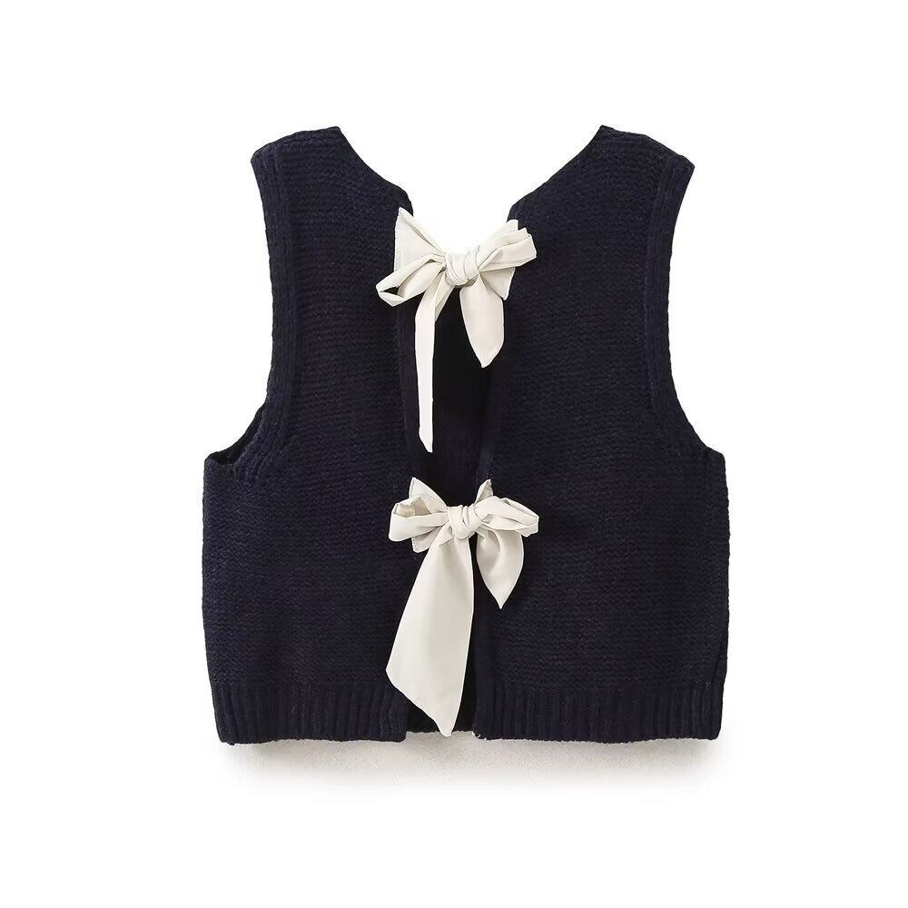 大人可愛いデザインの レディース ニットベストは、袖なしで襟付きの上品なアイテムです!シンプルながらもこなれ感があり、重ね着スタイルとしても大活躍します。背中のリボンがアクセントになり、オフィスやデートなど様々なシーンで華やかさを演出します。また、無地のホワイト、グレー、ネイビーの3色展開で、秋冬のコーディネートにぴったりです。