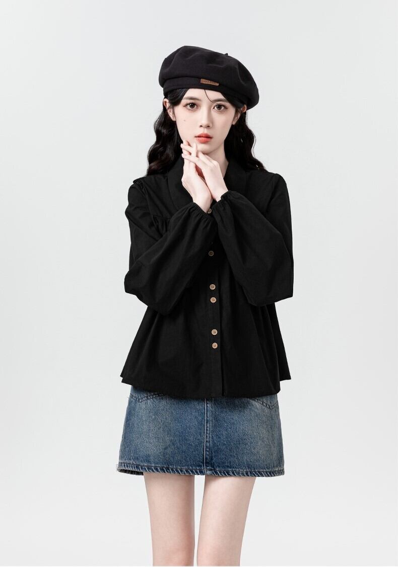 エレガントで大人可愛い、前開き長袖シャツブラウス。襟付きのデザインは、仕事やお出かけシーンに最適で、着るだけで上品な印象を与えます。ふわふわとした柔らかな素材感が心地良く、無地のシンプルなスタイルだからこそ、さまざまなボトムスとコーディネートしやすい一着です。春秋の普段使いにぴったりなアイテムで、着回し力も抜群です。
