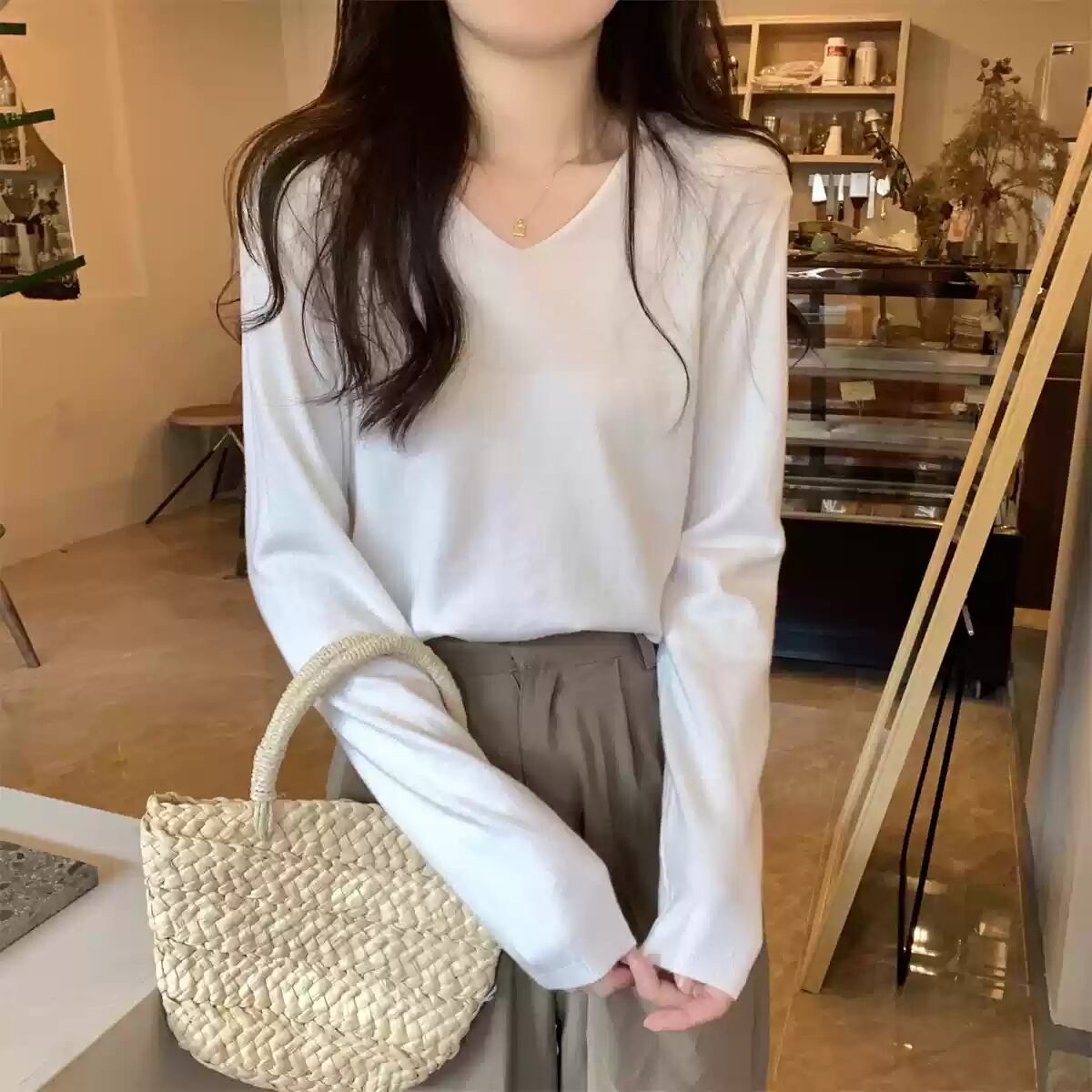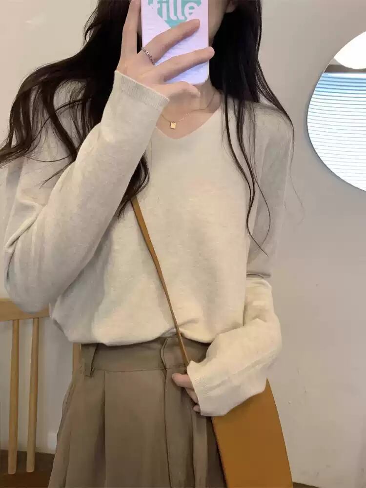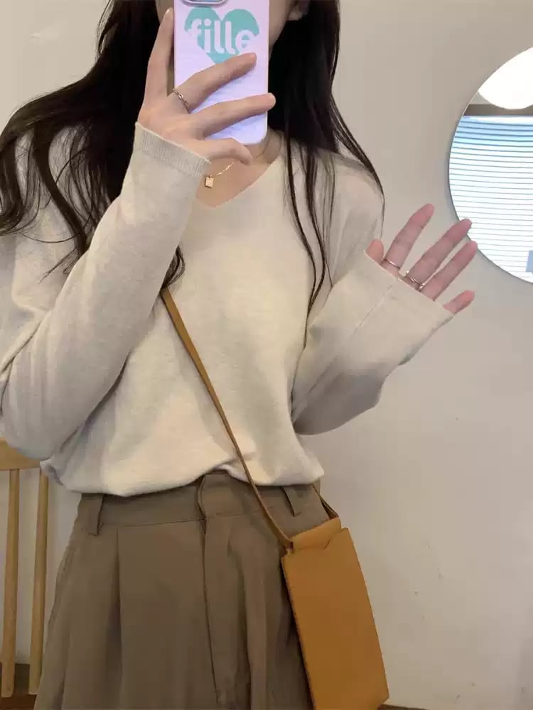 大人可愛い印象を与える、ニットセーターのご紹介です。長袖のVネックデザインは、女性らしさを引き立てながらもスリムなシルエットが魅力。無地のベーシックなカラーバリエーションは、秋冬のカジュアルから上品なオフィススタイルまで幅広く活躍します。また、学生やOLとしての通勤にも最適で、デートやお出かけ、旅行、女子会などのシーンにもおすすめです。韓国風のスタイリングにもバッチリ合うアクセントとして、コーディネートの主役になれる一着です。
