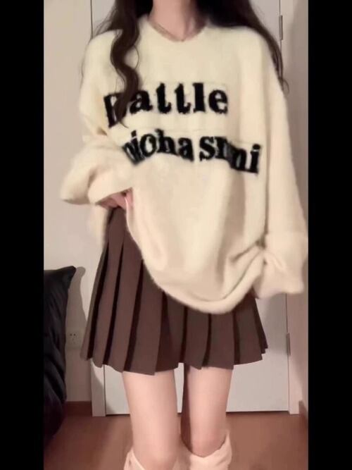レディース トップス セーター 長袖 かわいい 大人可愛い カジュアル おしゃれ かっこいい こなれ感 抜け感 ラブリー キュート ロゴ 春 秋 冬 重ね着 韓国 楽ちん 暖かい 防寒 体型カバー 普段使い 着回し モテ ゆる