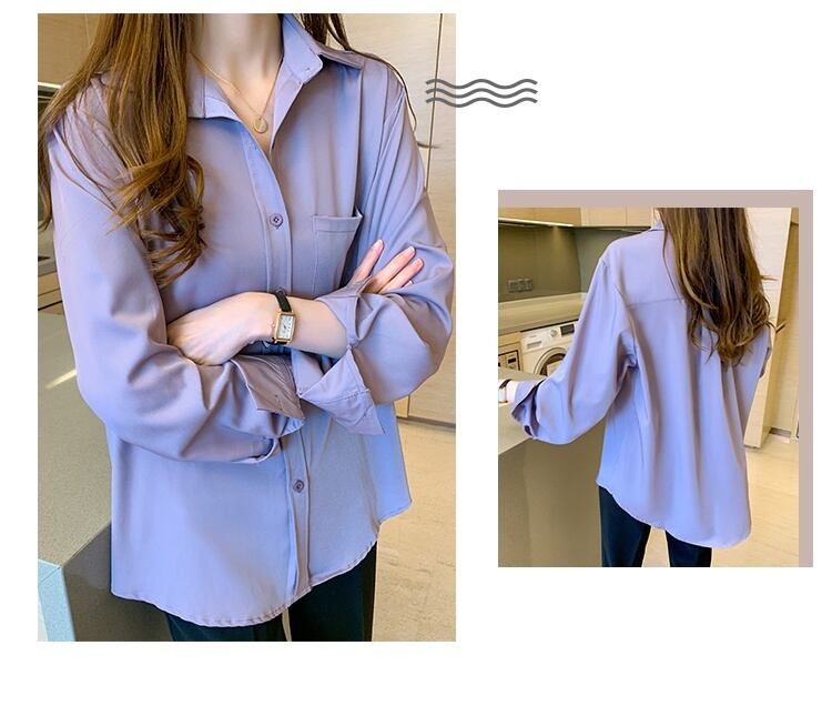 レディース トップス シャツ ブラウス 長袖 襟付き ポケット ボタン シンプル カジュアル 無地 春 秋 冬 通勤 お出かけ S M L XL 白 ホワイト 黒 ブラック 紫 ピンク ブルー パープル