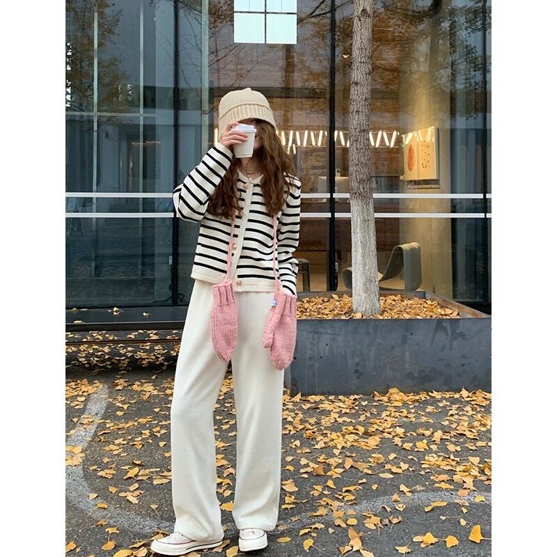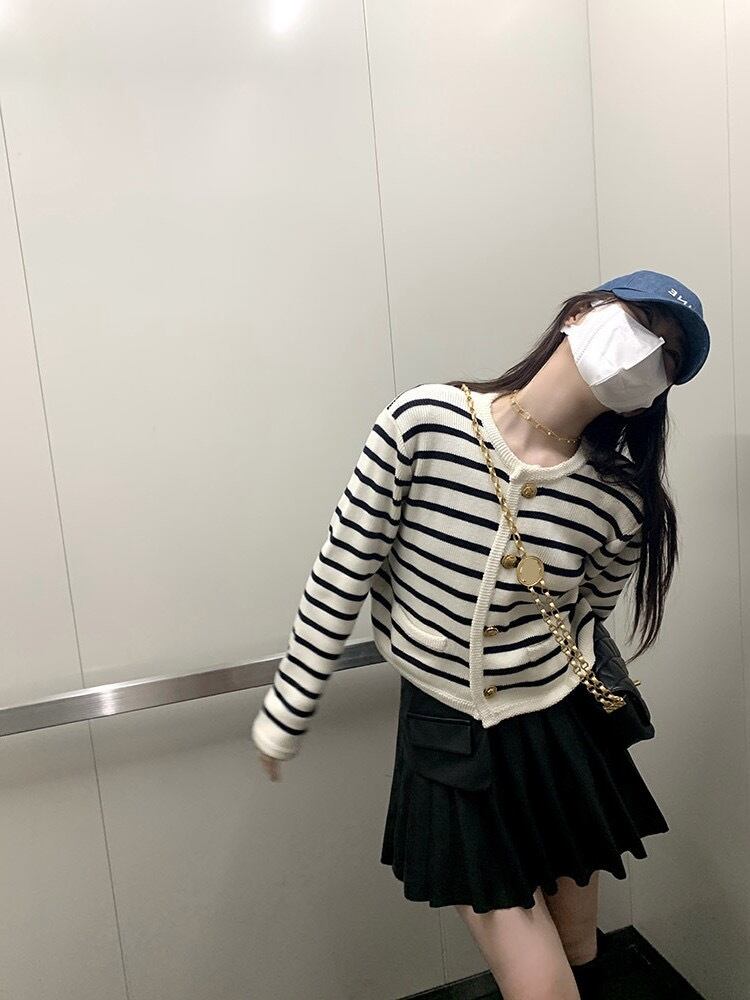 レディース ジャケット ニット セーター カーディガン アウター ショート 長袖 Uネック 襟なし ボタン ニット 上品 エレガント かっちり ボーダー 春 秋 オフィス OL 学生 学校 女子会 重ね着
