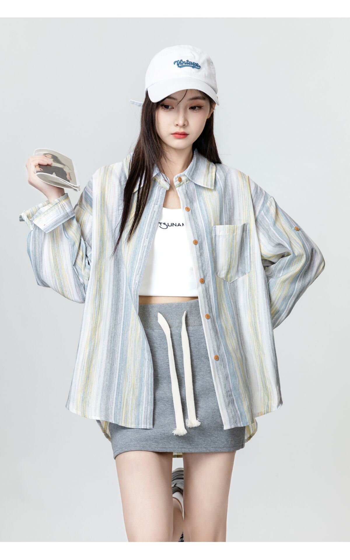 今年の春や秋にぴったりの、レディース トップス シャツが登場しました!前開きデザインとボリューム袖が魅力的なこのシャツは、カジュアルなおしゃれを演出しつつ、大人可愛い雰囲気を醸し出します。ストライプ柄がこなれ感をプラスし、オーバーサイズのシルエットがリラックスした着こなしを実現。普段使いにも最適です!