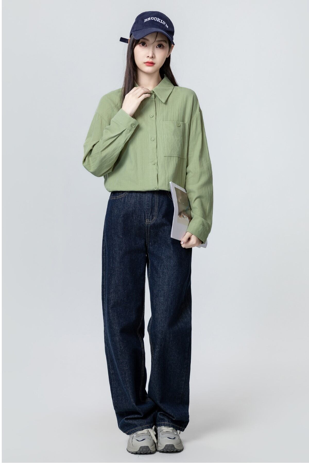 シンプルで可愛いレディースシャツが登場です!前開きデザインのこの長袖シャツは、洗練された大人可愛い印象を与え、ワイドオーバーサイズならではのリラックス感が魅力です。襟付きと胸ポケット付きのデザインが、カジュアルさを引き立て、普段使いから休日のお出かけまで幅広く活躍します。薄手の素材感は、さわやかな着用感をもたらし、シンプルな無地のグリーンが、どんなコーディネートにも合わせやすい色合いとなっています。