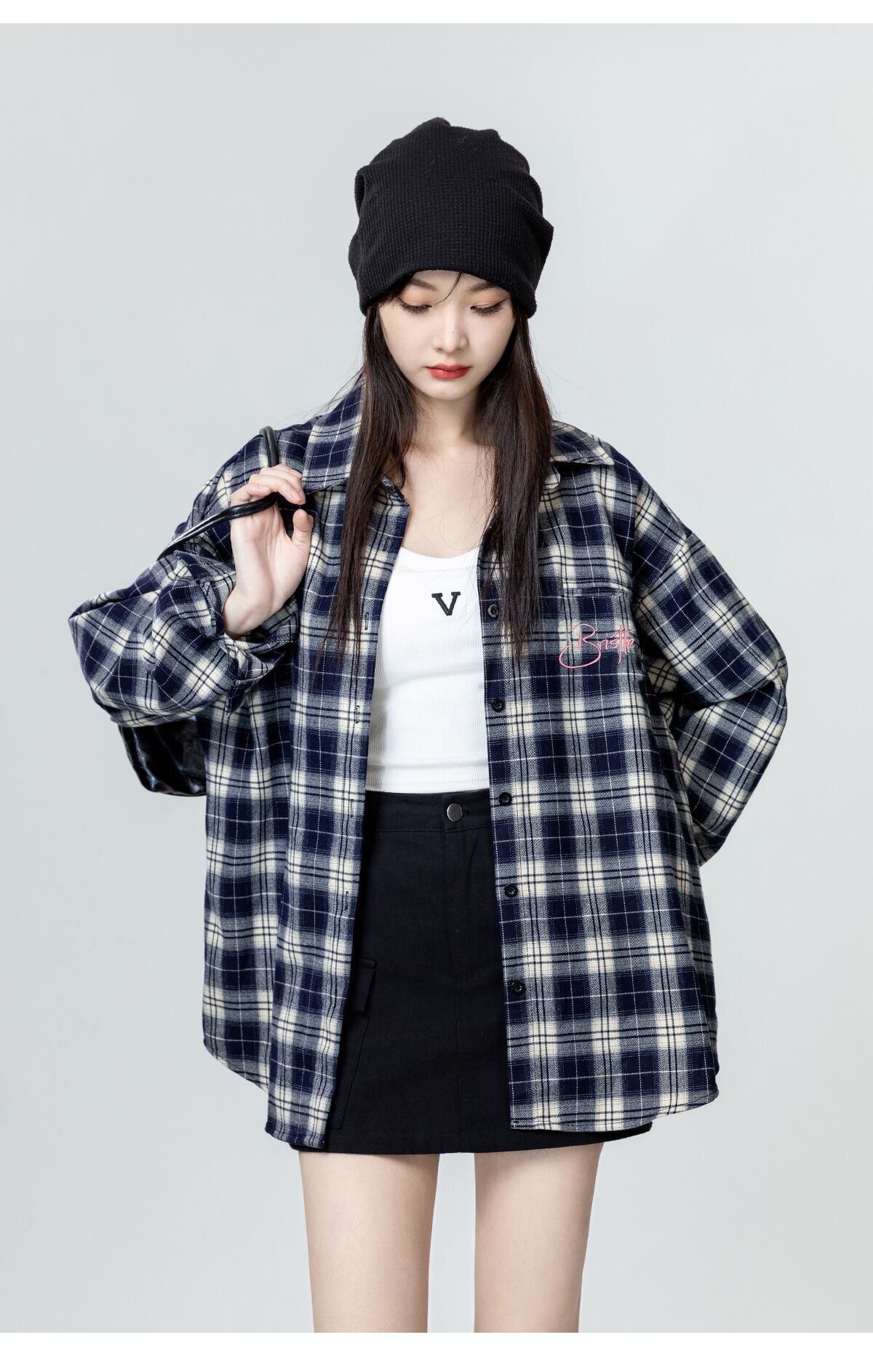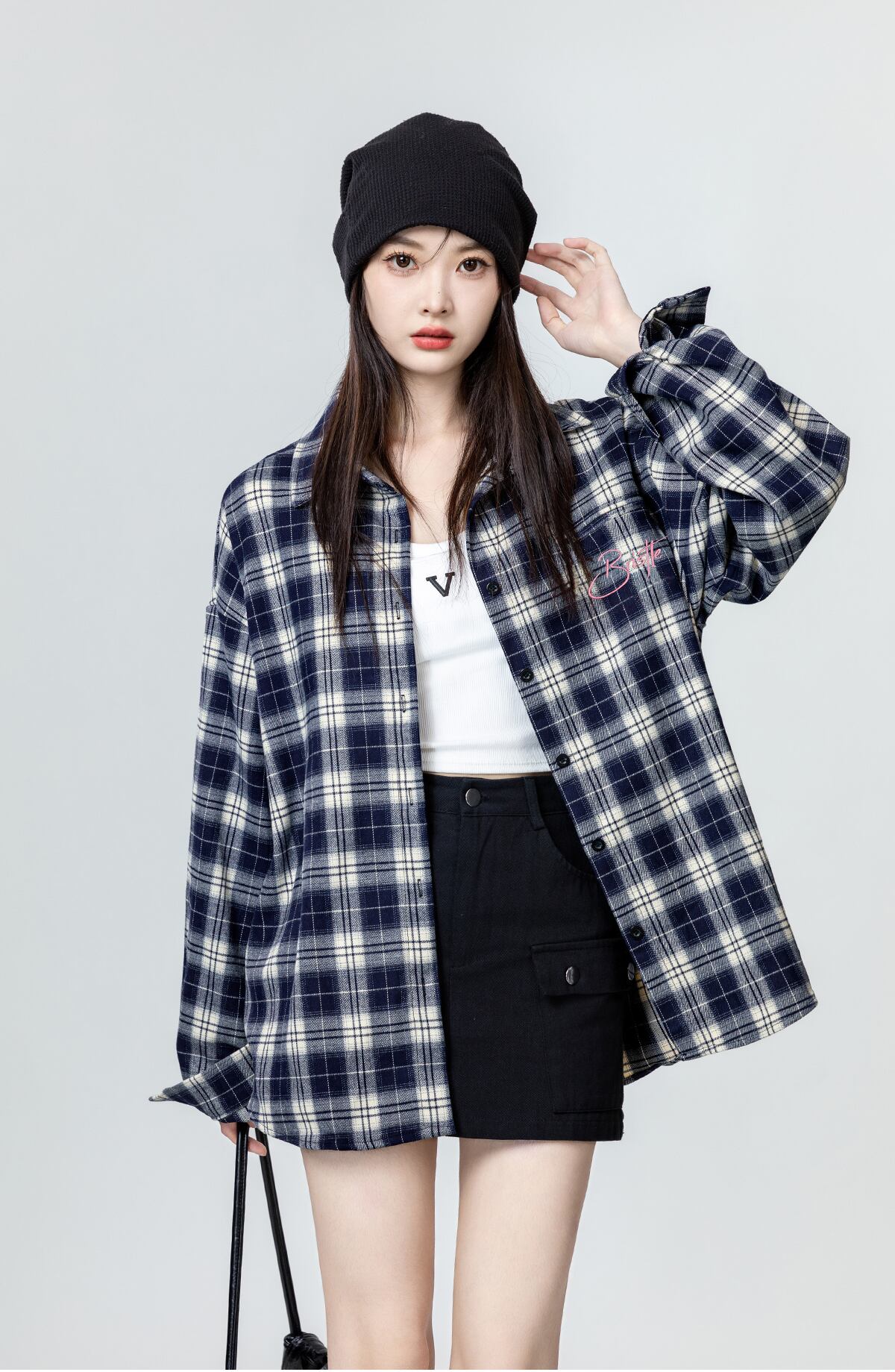 シンプルでおしゃれなレディースシャツが登場です!襟付きの長袖デザインは、大人可愛い印象を与え、ワイドオーバーサイズがリラックス感を演出します。胸ポケットと刺繡のアクセントがカジュアルさを引き立て、普段使いや休日のお出かけにぴったりな一枚です。ネイビーのチェック柄は、秋冬のコーディネートに存在感をプラスし、さまざまなスタイルに合わせやすい色合いとなっています。