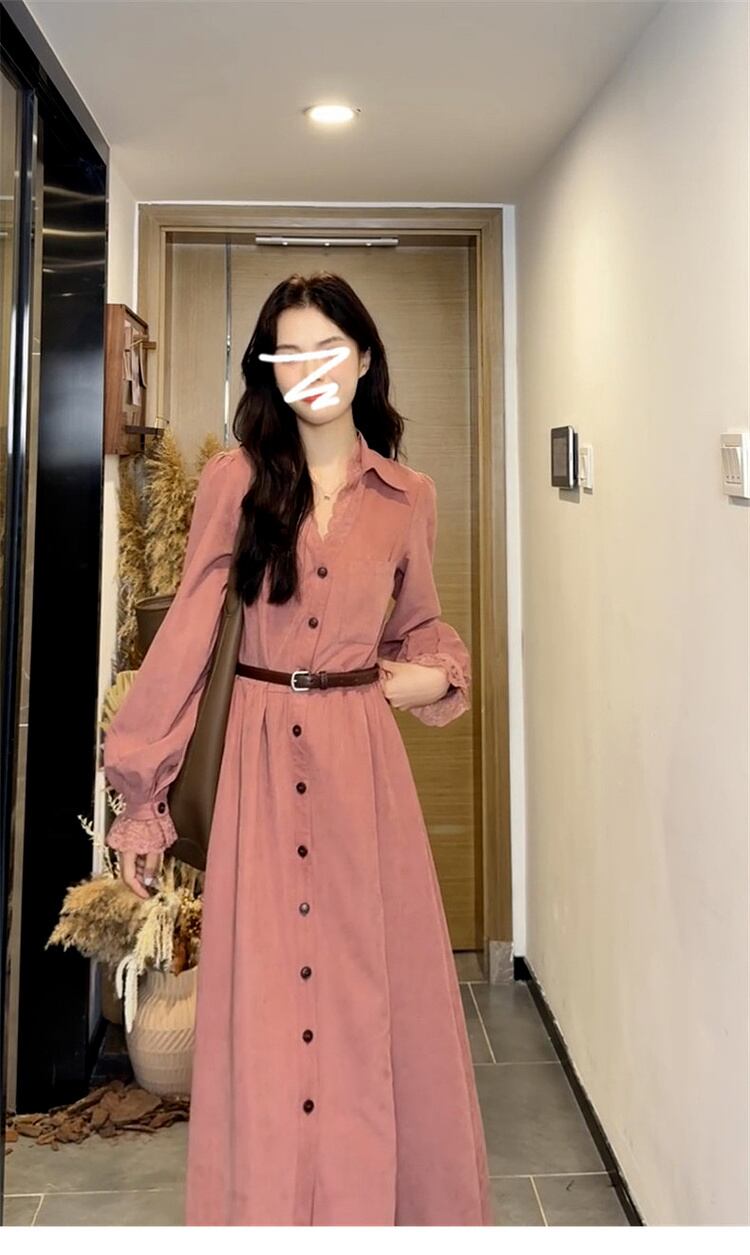 レディース ワンピース シャツワンピ フレア ミモレ ロング 長袖 パフスリーブ フリル袖 Vネック ポロカラー Aライン フェミニン ハイウエスト 大人可愛い きれいめ カジュアル 上品 ガーリー 抜け感 春 秋 デート お出かけ 脚長 普段使い