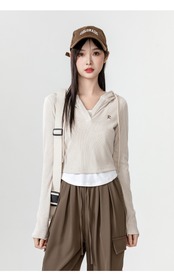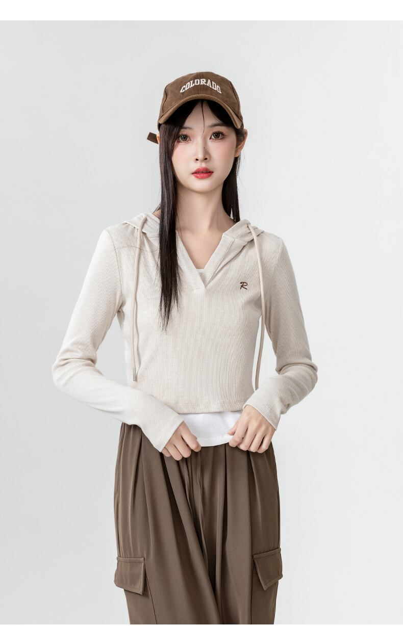 レディース トップス プルオーバー パーカー ショート丈 長袖 フード 薄手 刺繡 大人可愛い シンプル カジュアル おしゃれ こなれ感 ルーズ ロゴ 普段使い 着回し 定番 グレー ベージュ