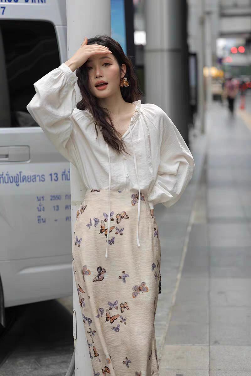 こちらは、大人可愛い魅力を引き立てる「レディース シャツ ブラウス 長袖 Vネック パフスリーブ リボン ワイド」です!軽やかなポリエステル素材を使用したこの薄手のブラウスは、春から秋までの季節に最適で、通勤やお出かけの際にぴったりな一着です。Vネックデザインとパフスリーブが女性らしさを引き立て、リボンがポイントとなり、きれいめでおしゃれな印象を与えます。