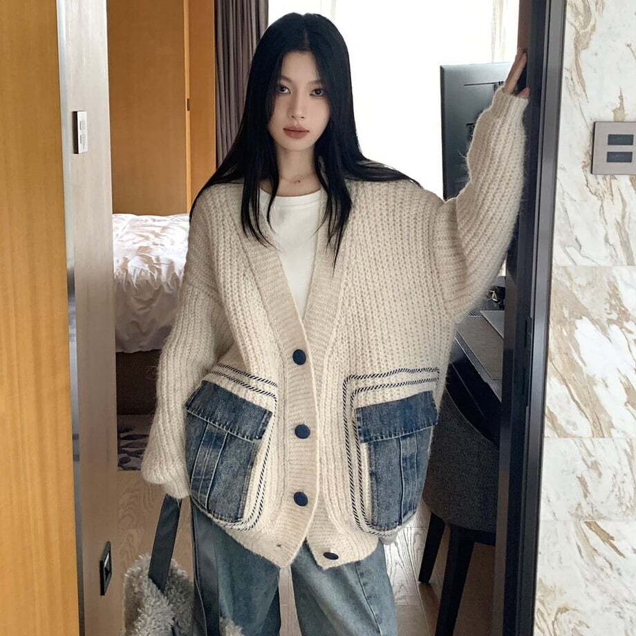 レディース ニット セーター カーディガン 前開き 長袖 Vネック ポケット 前開き ボタン かわいい 大人可愛い カジュアル 上品 おしゃれ かっこいい こなれ感 ラフ モダン 主役級 抜け感 秋 冬 重ね着 韓国 コーデ 楽ちん 暖かい 防寒 体型カバー 普段使い 着回し トレンド ゆる