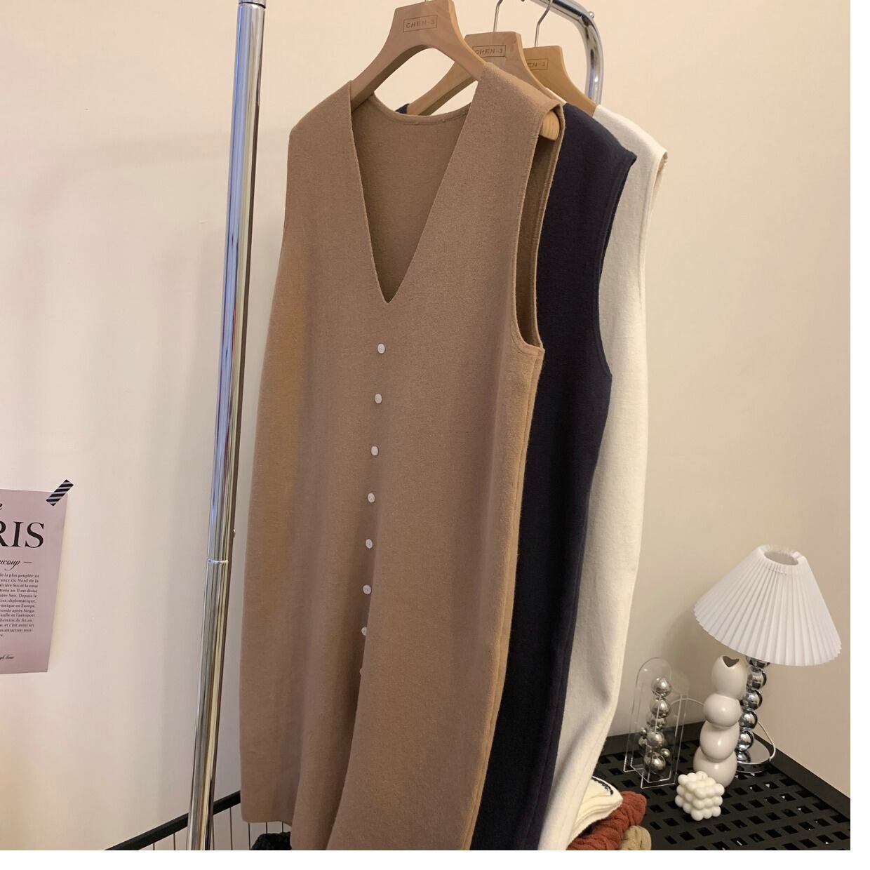 大人可愛いデザインのレディースワンピースは、膝下丈でノースリーブ、Vネックが魅力的なシンプルでおしゃれなアイテムです!無地のダークグレー、オフホワイト、カーキの3色展開で、どんなスタイルにも合わせやすく、リラックスしたラフな印象を与えてくれます。個性的なデザインは、通勤や通学、デート、休日のお出かけや旅行にもぴったりです。
