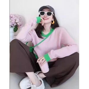 大人可愛いおしゃれなレディーストップス ニットが登場です!ニット素材の長袖デザインは、春秋冬の重ね着にぴったりで、普段使いはもちろん、デートや女子会にもおすすめなアイテムです。バイカラーのデザインが目を引き、こなれ感と抜け感を演出してくれます。個性的な萌袖スタイルが主役級の存在感を放ち、ラフでありながらもおしゃれな雰囲気を楽しむことができます。