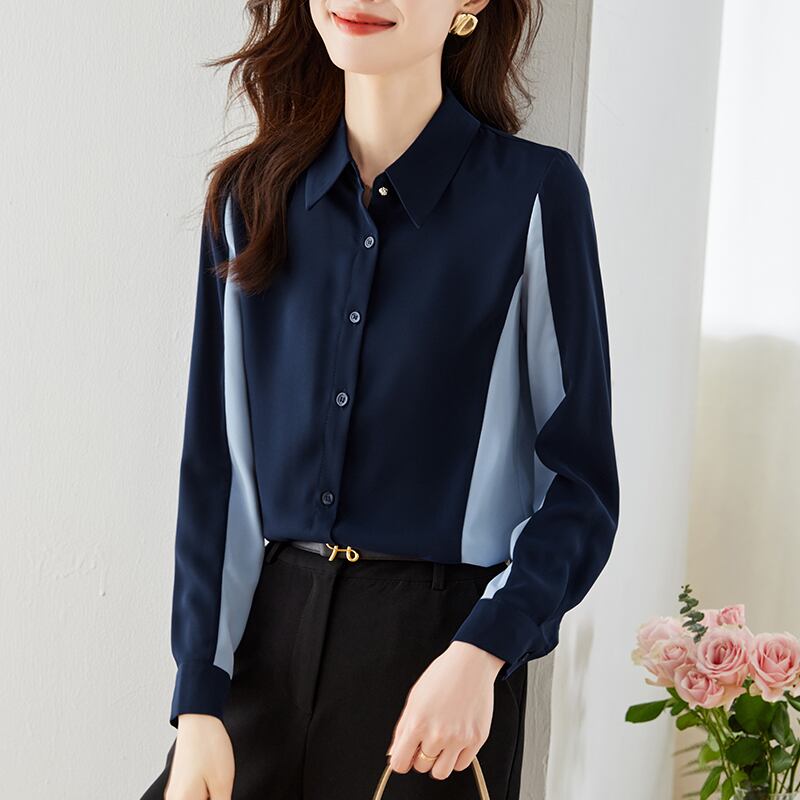 秋冬のおしゃれに最適なレディースシャツ。シンプルで上品なデザインは、バイカラーがアクセントとなり、都会的な印象を与えます。長袖かつ襟付きのスタイルはOLの通勤や、お出かけ、ショッピングにもぴったりな一着です!