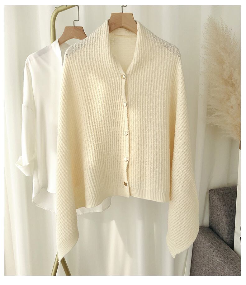 レディース トップス ニット ショール 袖なし ボタン きれいめ シンプル 上品 おしゃれ かっこいい ラフ 無地 ロングシーズン 防寒 着回し フリーサイズ ブラック ブラウン ベージュ