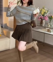 レディース カットソー ニット 長袖 ワンショルダー アシンメトリー ニット かわいい 大人可愛い おしゃれ ボーダー 秋 冬 デート 女子会 重ね着 韓国 コーデ 普段使い 着回し モテ 定番