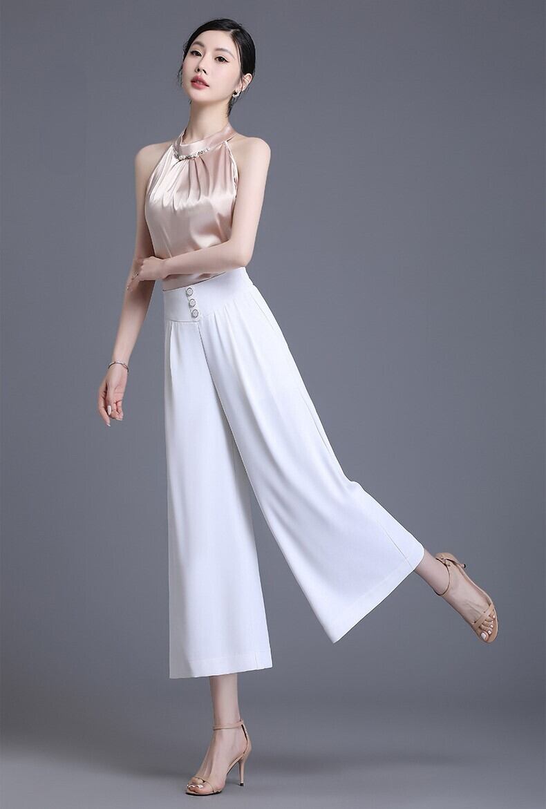 このレディースガウチョパンツ、またはキュロットは、大人可愛いスタイルにぴったりの一着です。7分丈のクロップドデザインとワイドなAラインシルエットが特徴で、ハイウエストとイージーウエストが快適な履き心地を提供します。シンプルで上品なデザインがきれいめなおしゃれ感を引き立て、前ポケットが実用性をプラス。定番アイテムとして、普段使いから特別なシーンまで幅広く活躍します。このガウチョパンツで、洗練されたコーディネートを楽しんでください!