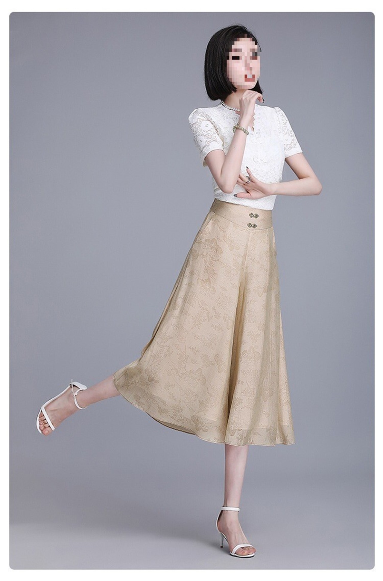 レディース パンツ ボトムス キュロットスカート 膝下 ワイド ポケット ハイウエスト イージーウエスト 薄手 大人可愛い きれいめ シンプル 上品 おしゃれ 夏 楽ちん 普段使い 着回し