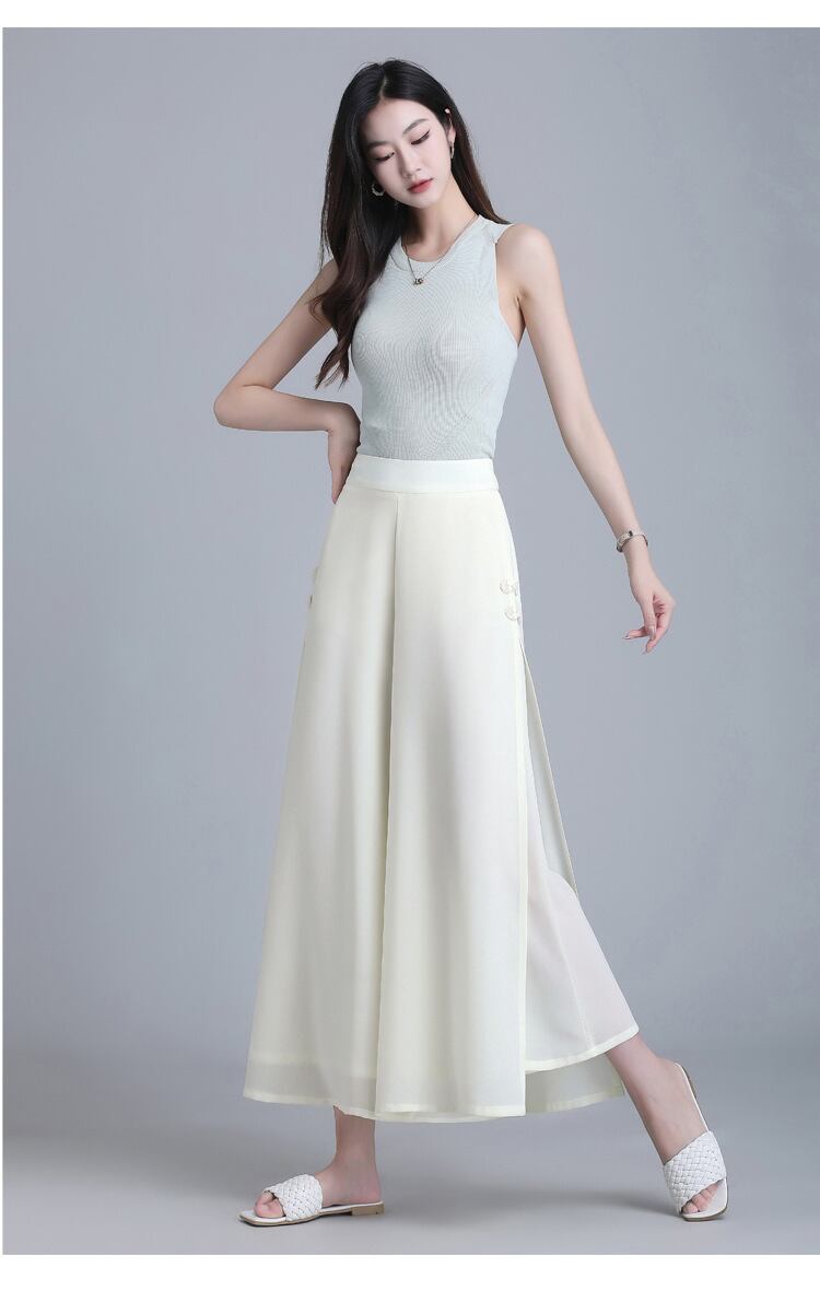 このレディースガウチョパンツ、またはキュロットは、9分丈のクロップドスタイルとワイドなAラインシルエットが特徴です。ハイウエストとイージーウエストが快適な履き心地を提供し、薄手の素材が大人可愛いきれいめなスタイルを引き立てます。シンプルで上品なデザインが、おしゃれでラフなルーズ感をプラス。普段使いから特別なシーンまで幅広く活躍するこのパンツで、洗練されたスタイルを楽しんでください。