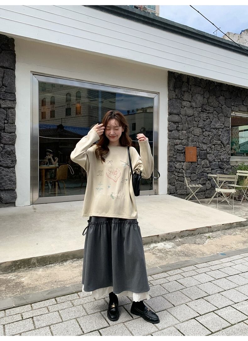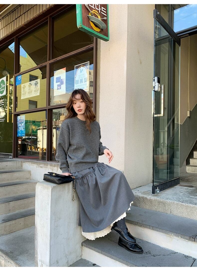 レディース スカート ボトムス 膝下 ロング スリム 細身 ハイウェスト Aライン フリル ドッキング ポリエステル 中厚手 大人可愛い きれいめ 無地 春 夏 秋 冬 通勤 デート ダークグレー