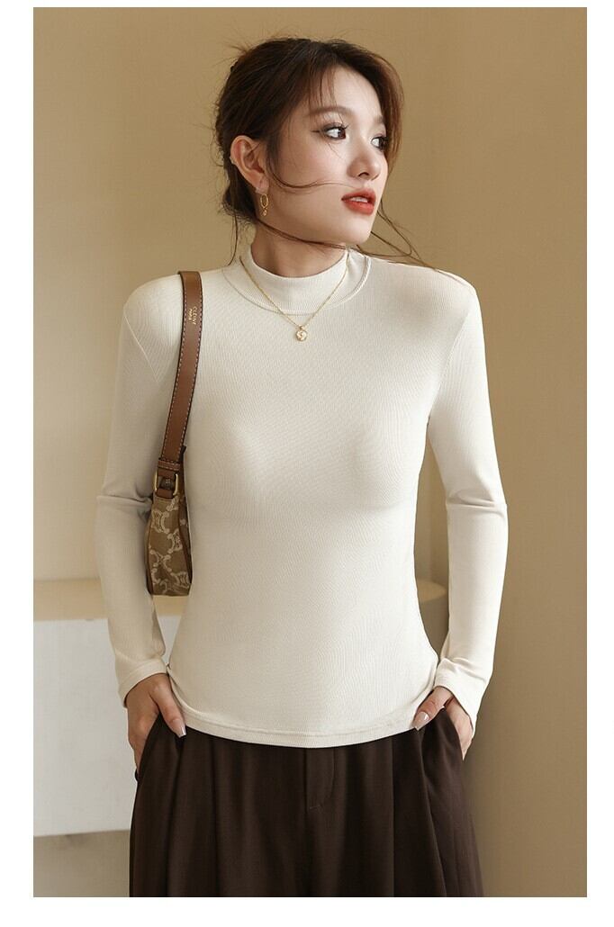 レディース トップス 長袖 ハイネック スリム 細身 フェミニン 中厚手 かわいい 大人可愛い シンプル カジュアル おしゃれ 無地 秋 冬 デート お出かけ 女子会 休日 暖かい S M L XL ホワイト ブラック ブラウン ベージュ