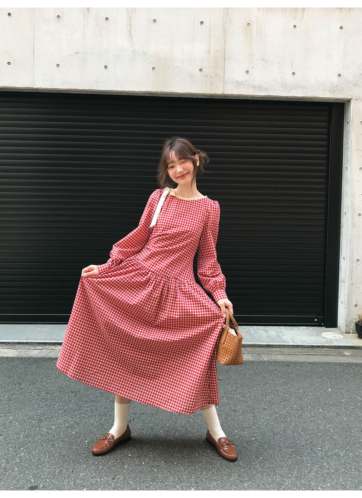 このワンピースは、春秋にぴったりなロング丈のフレアスカートスタイルで、膝下のミモレ丈が魅力です。長袖のUネックデザインにリボンアクセントが加わり、かわいらしさを演出します。ギンガムチェックのパターンが、カジュアルでありながらもガーリーな雰囲気を引き立て、デートや旅行に最適な一着です。また、インスタ映えするスタイルとしても大人気!このワンピースを着ることで、あなたの日常を特別なものに変えてくれます。