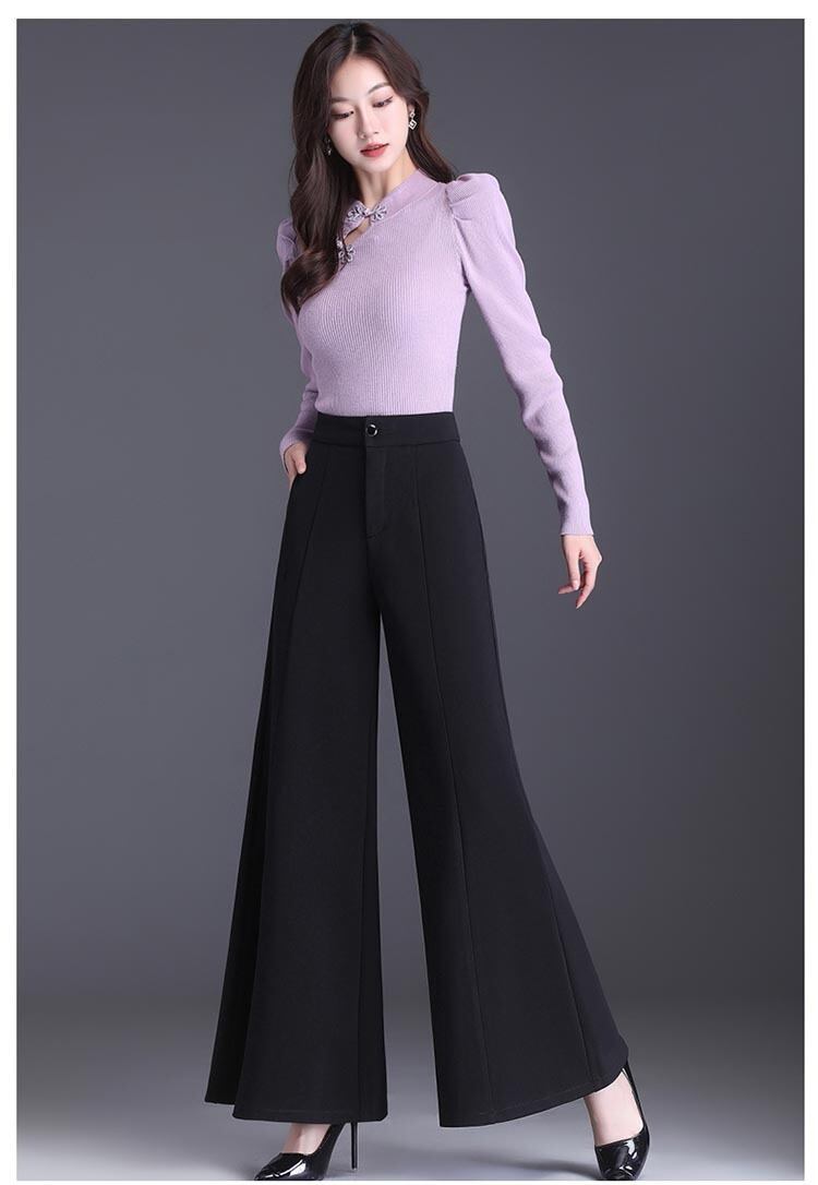 このレディースワイドパンツは、フルレングスのデザインで、美しいAラインシルエットが特徴です。ハイウエストとセンタークリース、ジッパーフライがきれいめなスタイルを引き立て、大人可愛い上品な印象を与えます。シンプルで無地のデザインが、清楚でおしゃれなコーディネートを実現。この定番アイテムは、普段使いから特別なシーンまで幅広く活躍します。