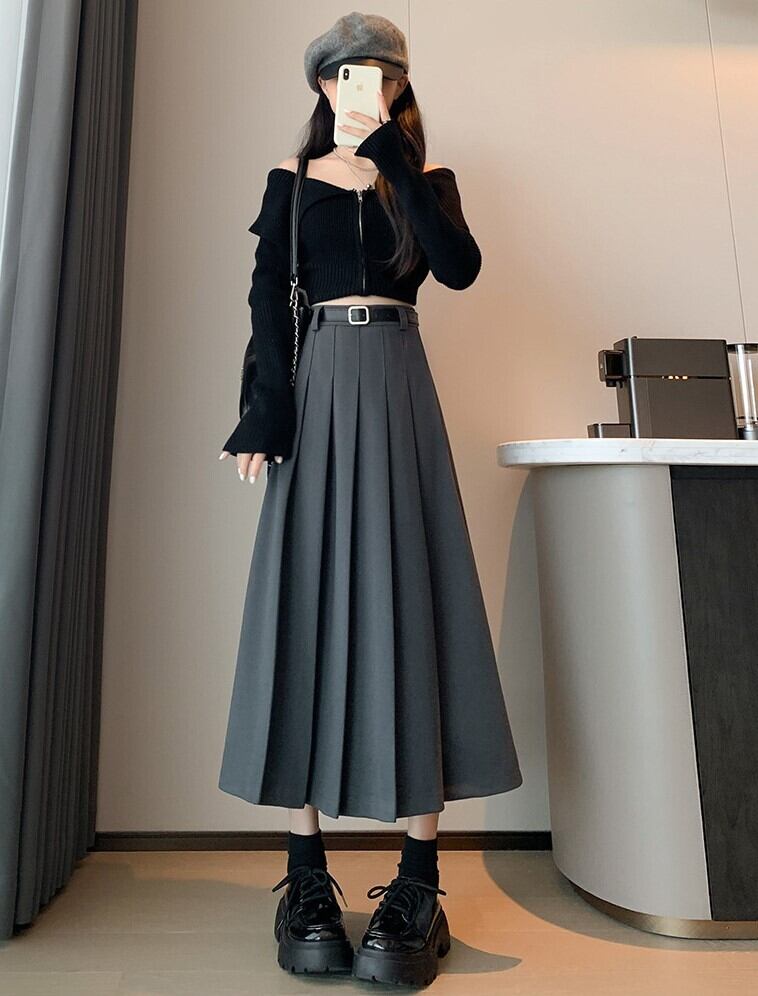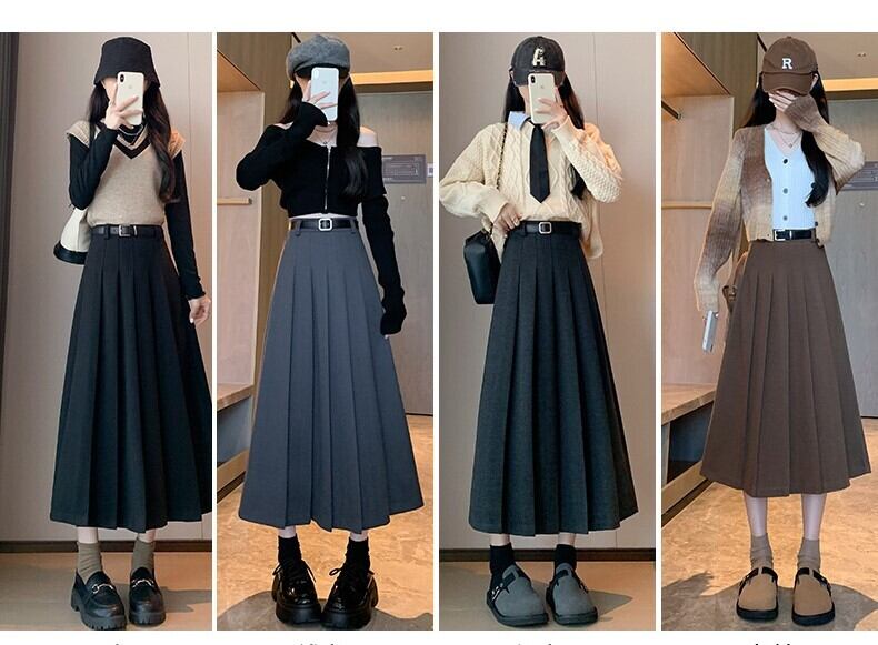 レディース スカート プリーツスカート ロング Aライン プリーツ ベルト 中厚手 大人可愛い きれいめ シンプル カジュアル おしゃれ こなれ感 ルーズ クール ベーシック ナチュラル 無地 秋 冬