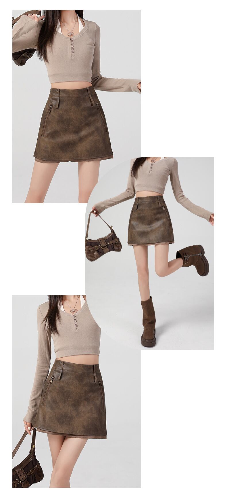 レディース ボトムス ショートスカート 膝上 Aライン ハイウエスト PUレザー サイドジップ ベルトループ 大人可愛い カジュアル おしゃれ かっこいい こなれ感 無地 美脚 脚長