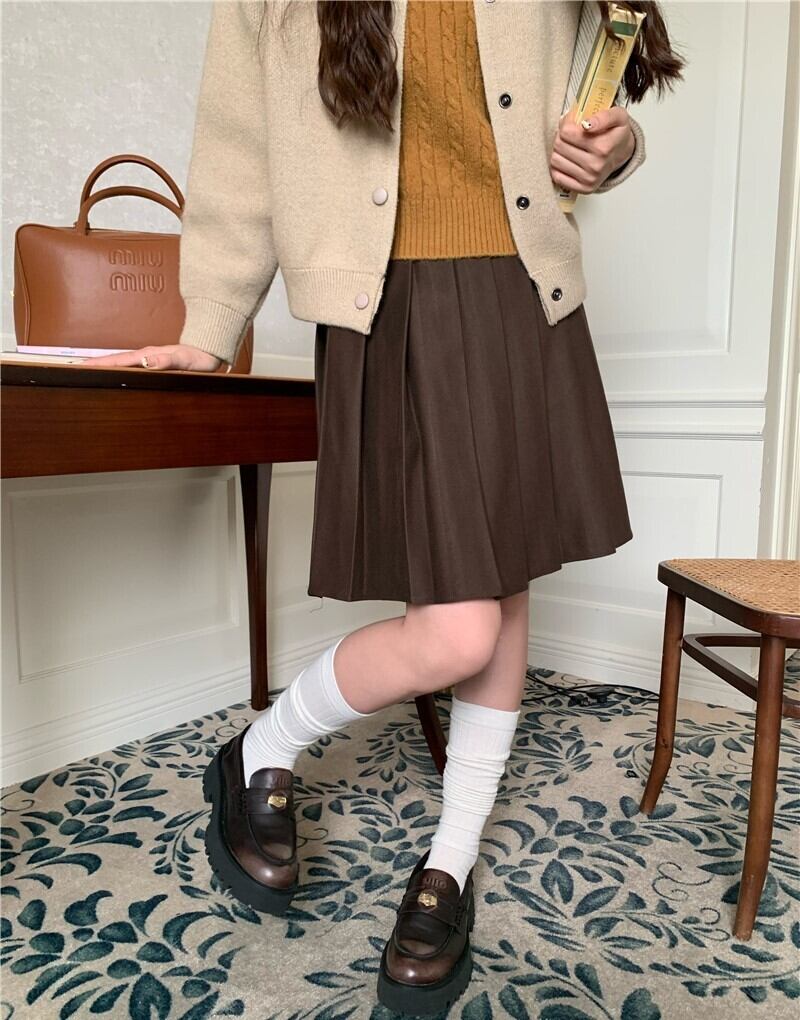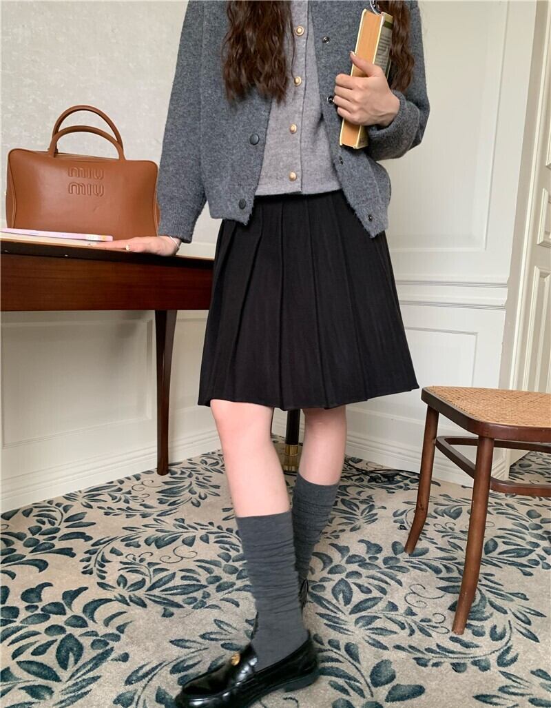 レディース スカート 膝上 Aライン プリーツ かわいい きれいめ シンプル レトロ ガーリー 学生風 無地 春 夏 秋 冬 オールシーズン 学生 デート お出かけ 女子会 休日 韓国 普段使い 着回し 清楚