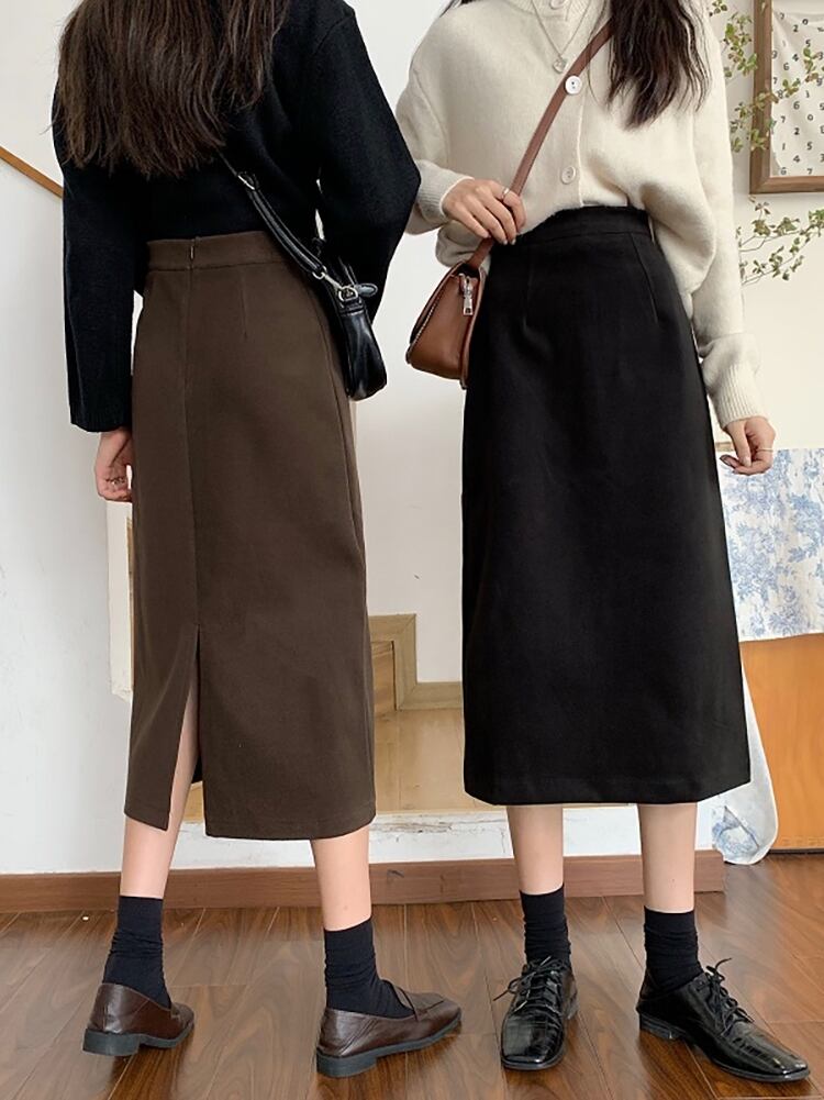 レディース スカート ロングスカート ミモレ スリム Iライン タック スリット ハイウエスト 大人可愛い きれいめ シンプル 上品 無地 春 夏 秋 冬 オフィス ビジネス OL 通勤 脚長 普段使い 着回し