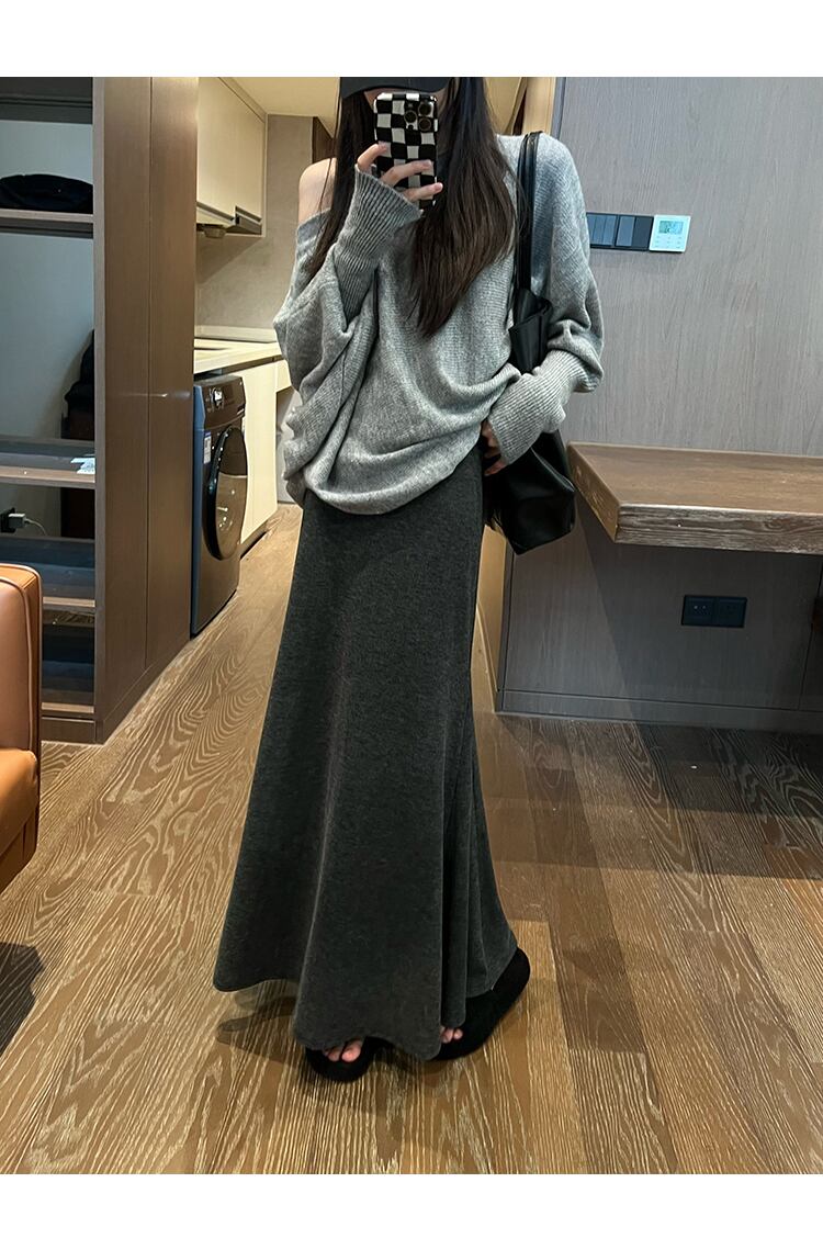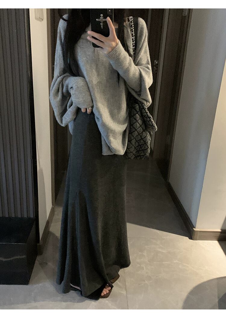 レディース スカート ロングスカート ロング マキシ マーメイド 大人可愛い きれいめ シンプル 上品 こなれ感 都会的 無地 デート お出かけ 旅行 女子会 休日 楽ちん 美脚 脚長 モテ 黒 グレー
