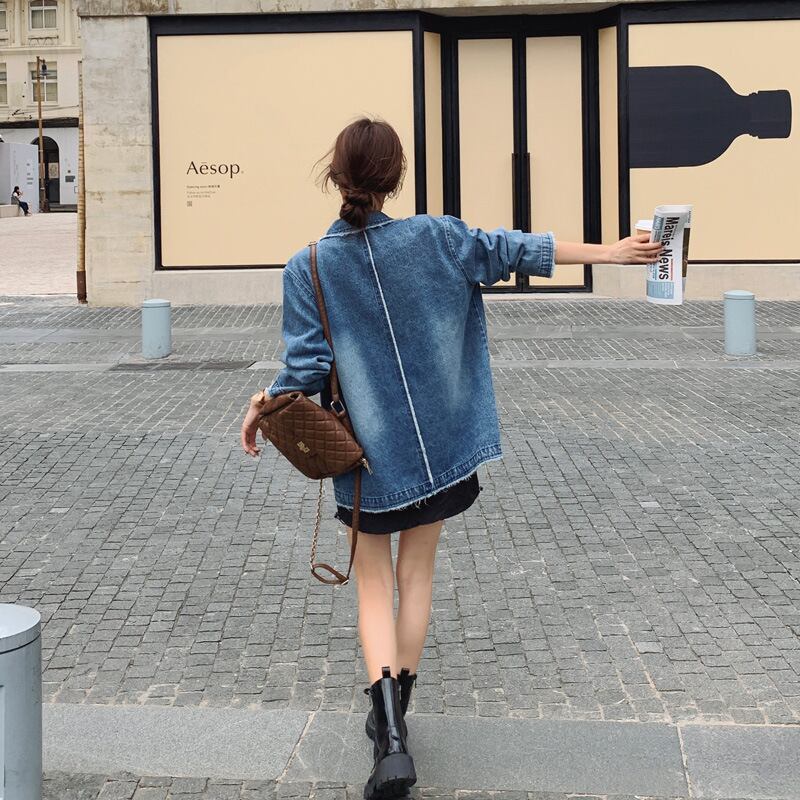 大人可愛いスタイルを叶える、デニムジャケットが登場しました!前開きのデザインとボタン留めがポイントで、カジュアルながらもおしゃれな印象を与えます。長袖でシーズン問わずご利用いただけるため、春・秋・冬の着回しにぴったり!こなれ感を演出するこのジャケットは、普段使いはもちろん、韓国コーデにも最適です。