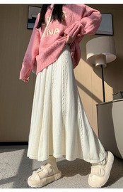 スカート ロング フレア ケーブルニット ニット かわいい 大人可愛い カジュアル おしゃれ ガーリー 無地 春 秋 冬 デート お出かけ 女子会 休日 カフェ モノトーン 暖かい 脚長 着回し 白 黒