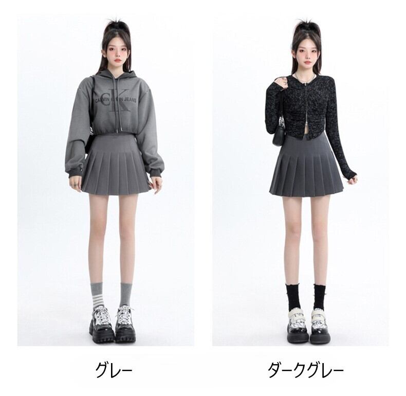 このレディースショートプリーツスカートは、膝上丈のフレアAラインシルエットが特徴です。プリーツとタックが美しいラインを作り出し、ハイウエストデザインが脚長効果を引き立てます。かわいくて大人可愛いきれいめスタイルを演出するシンプルな無地デザインが、おしゃれでどんなコーディネートにもマッチ。この定番スカートで、美脚効果もばっちりな日常のおしゃれを楽しんでください!