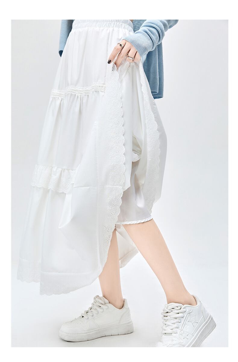 こちらのレディースロングレーススカートは、8分丈のワイドフレアシルエットが特徴です。レースと刺繍が施されたシフォン素材が、ふわふわでふっくらした大人可愛いきれいめスタイルを演出します。イージーウエストで快適な履き心地を提供し、薄手の素材が上品でおしゃれな印象を与えます。普段使いにもぴったりなこのスカートで、エレガントな日常を楽しんでください!