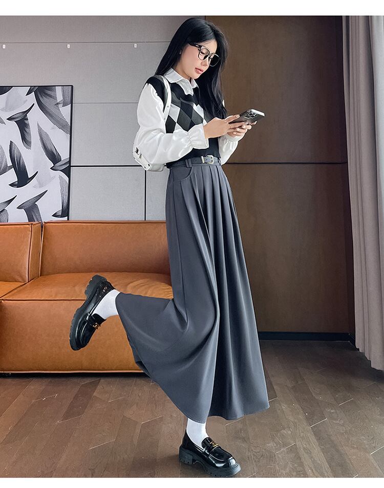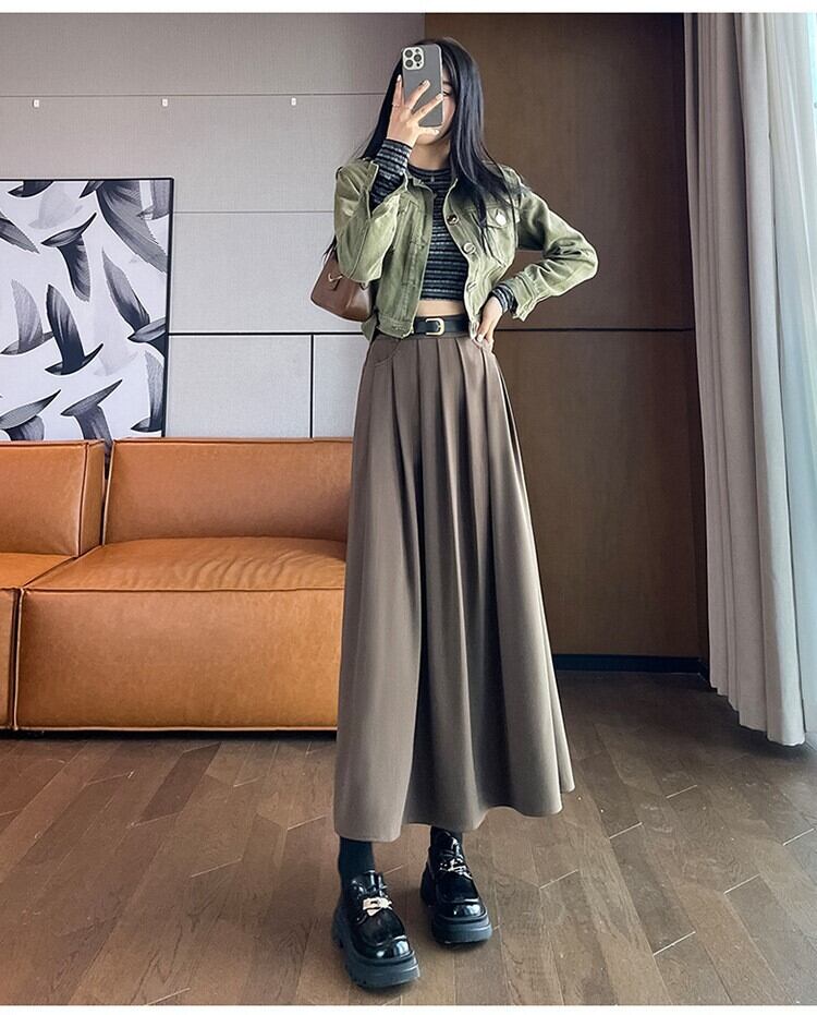 こちらのレディースプリーツロングスカートは、9分丈のAラインシルエットが特徴です。プリーツとハイウエストデザインが美しいラインを作り出し、ベルトとポケットが実用性をプラス。イージーウエストが快適な履き心地を提供し、大人可愛いきれいめスタイルを演出します。シンプルで上品な無地デザインがおしゃれ感を引き立てる一着です。普段使いにもぴったりで、スタイリッシュな日常を楽しんでください!