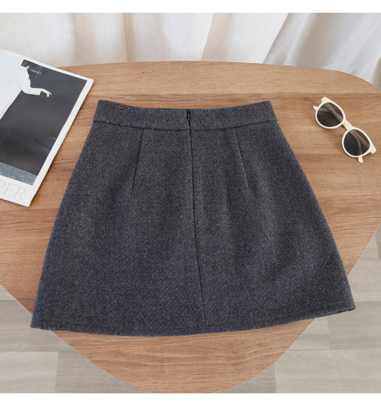 レディース スカート ミニ 膝上 Aライン ファスナー かわいい シンプル おしゃれ 無地 秋 冬 デート お出かけ 休日 ショッピング カフェ お揃い 双子 美脚 脚長 着回し 白 黒 ブラウン グレー